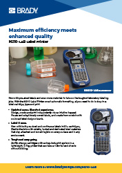 Etikettskrivaren M210-LAB ger utstansade etiketter och över 90 etikettkassetter för att klara de tuffaste etikettjobben i laboratoriet. Med skrivarens funktion för smart automatisk formatering behöver du bara sätta i en materialkassett och börja skriva ut.