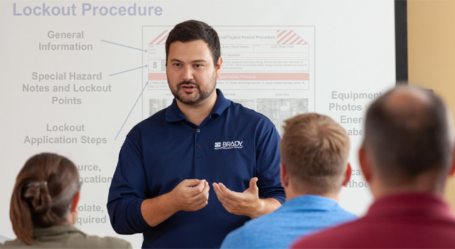 För att stödja optimala Lockout/Tagout-program delar Brady med sig av erfarenhet, expertis och bästa praxis som identifierats i hundratals Lockout/Tagout-implementeringar i världsomspännande industrier. Våra säkerhetsingenjörer kan optimera eller skapa ditt Lockout/Tagout-program för mer säkerhet på arbetsplatsen, bättre regelefterlevnad och högre effektivitet.