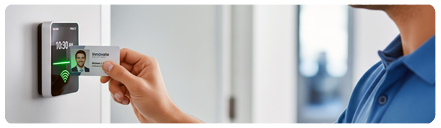 RFID-kortteknik används för åtkomstkontroll och säkerhet tack vare dess unika identifiering. Systemen fungerar genom att en läsare placeras vid en dörr som upptäcker den ID-signal som överförs av RFID-kortet. Dörren låses endast upp om det finns en överensstämmelse mellan RFID-kortet och behörigheten i åtkomstkontrollsystemet.